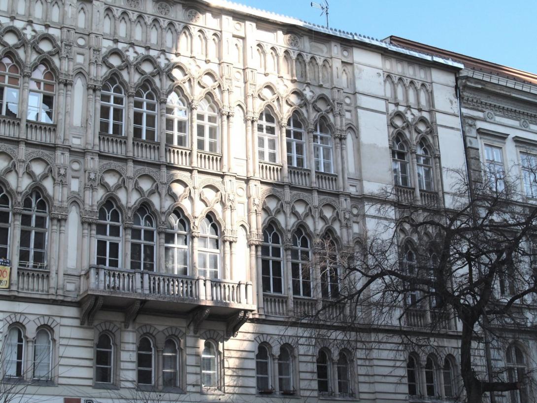 1855 és 1857 között épült, tervezte Wieser Ferenc (1812 – 1869). A romantikus homlokzatszerkesztés szabályai szerint a gótika – azon belül is a velencei (pl. Dózse palota vagy a Ca' d'Oro) – stílusjegyeit viseli. Az épület sarkán és végén páros és hármas nyílástengellyel kihangsúlyozott sarokrizalitok keretezik a hármas-négyes ablakcsoportokkal tagolt homlokzati mezőket.