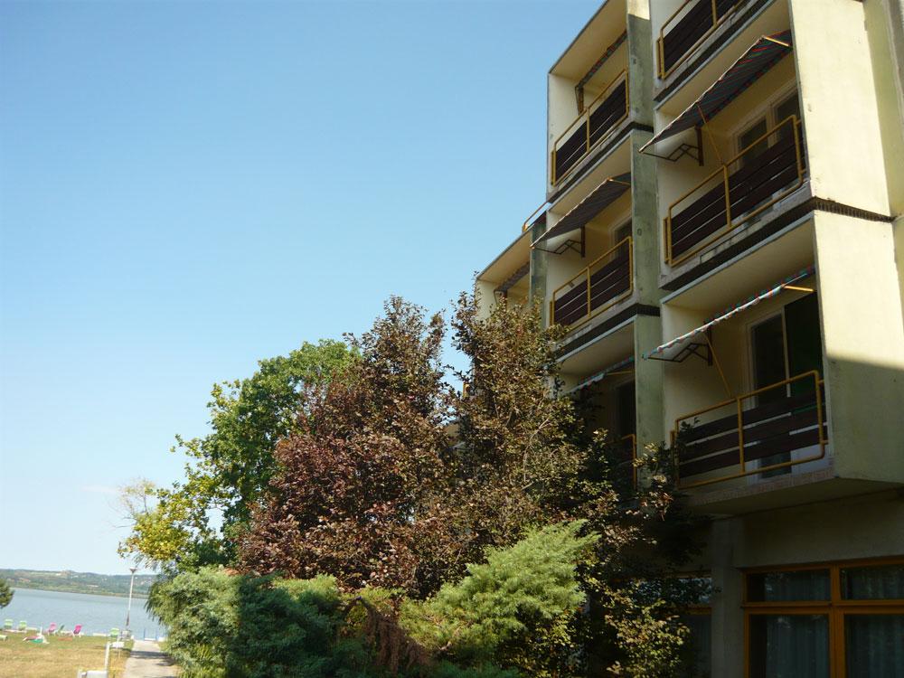 Panales technikával készült épület, ha jól tudom valaha MÁV üdülő volt. Egy ideig Hotel Gárdony néven működött aztán bezárt, 2013-ban Hotel Piramis néven nyílt meg újból.