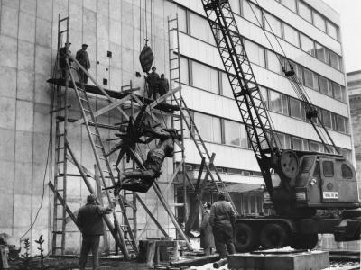 Az Esterházy utcában (jelenleg Pollack Mihály téren) álló – Ybl Miklós terve alapján 1857-58-ban épült – Nemzeti Lovarda földszinti szalonját már felhasználta zenekari felvételekre a Rádió, átépítései alkalmával. Miután a Lovardát a II. világháború pusztításai miatt le kellett bontani, a helyén 1952-ben, a hidegháborús hisztéria keretében, egy atomcsapás esetére tervezett, több méter vastag betonfalakkal védett stúdió épült, két földalatti és két földfeletti szinttel. Ennek - Nánási Sándor és Szende László tervezésével – 1969-re megvalósult körbeépítése hozta létre az ötemeletes, vasbetonvázas irodaépületet, homlokzatán Somogyi József szobrászművész Kompozíciójával. Az egyik épületszárny tetejére egy acél antennatornyot is felállítottak.