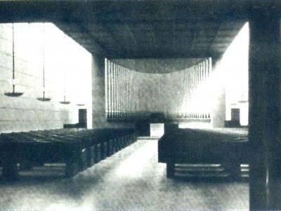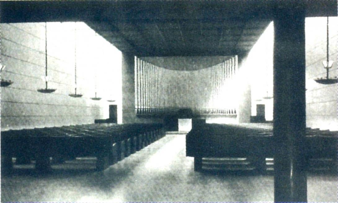 Az imaterem kazettás mennyezete két hosszanti felülvilágító sávval kapcsolódott az oldalfalakhoz, innen a tér természetes fényt is kaphatott.