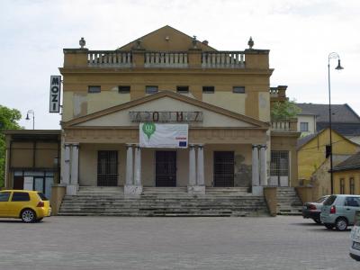 "...Az épület 1914-ben épült mozgófénykép-színházként (vagyis „mozi”-ként). Tervezője Mende Valér, a kor elismert építésze. Az eltelt közel száz év alatt több átalakításon esett át, végül az 1990-es évek végén bezárt, azóta üresen áll. A város ezidáig nem tudta hasznosítani, állapota egyre romlik..." F: http://epiteszforum.hu