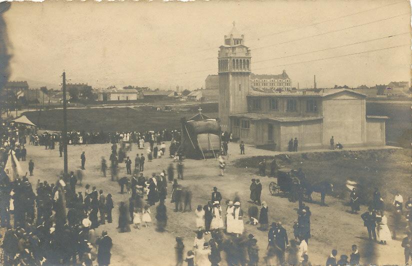 A zuglói híveknek az 1900-as évek elején egy lakásban, majd egy vendéglőből kialakított kápolnában tartott szentmisék után 1923-ban a Bosnyák tér délkeleti szögletében (kb. a mai Diego áruház helyén) építették fel a Páduai Szent Antal Egyházközség plébániatemplomát. Ez az ún. kistemplom bauxitbetonból épült, 500 főt tudott befogadni, és biztonsági okokból 1957-ben le kellett bontani. (Ekkor már – 1946-tól – állt mellette a ma ismert, 3000 fős Bosnyák-téri templom.)